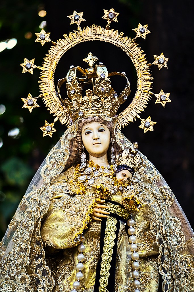 En 1845 el párroco Santiago Romero propagó la devoción a la Santísima Virgen María bajo la advocación de Virgen del Rosario. Este sacerdote católico encarga a unos escultores de Manila tres tallas para instalar durante la consagración de la iglesia parroquial: una para la Virgen María, otra para San Miguel Arcángel, y una tercera para los Santos Ángeles Custodios. En el mes de julio de ese año, una vez concluido el trabajo, fueron las tallas embaladas en tres cajas, siendo enviado a Santo Tomás en el velero Matutina, atravesando el Mar de China Meridional.